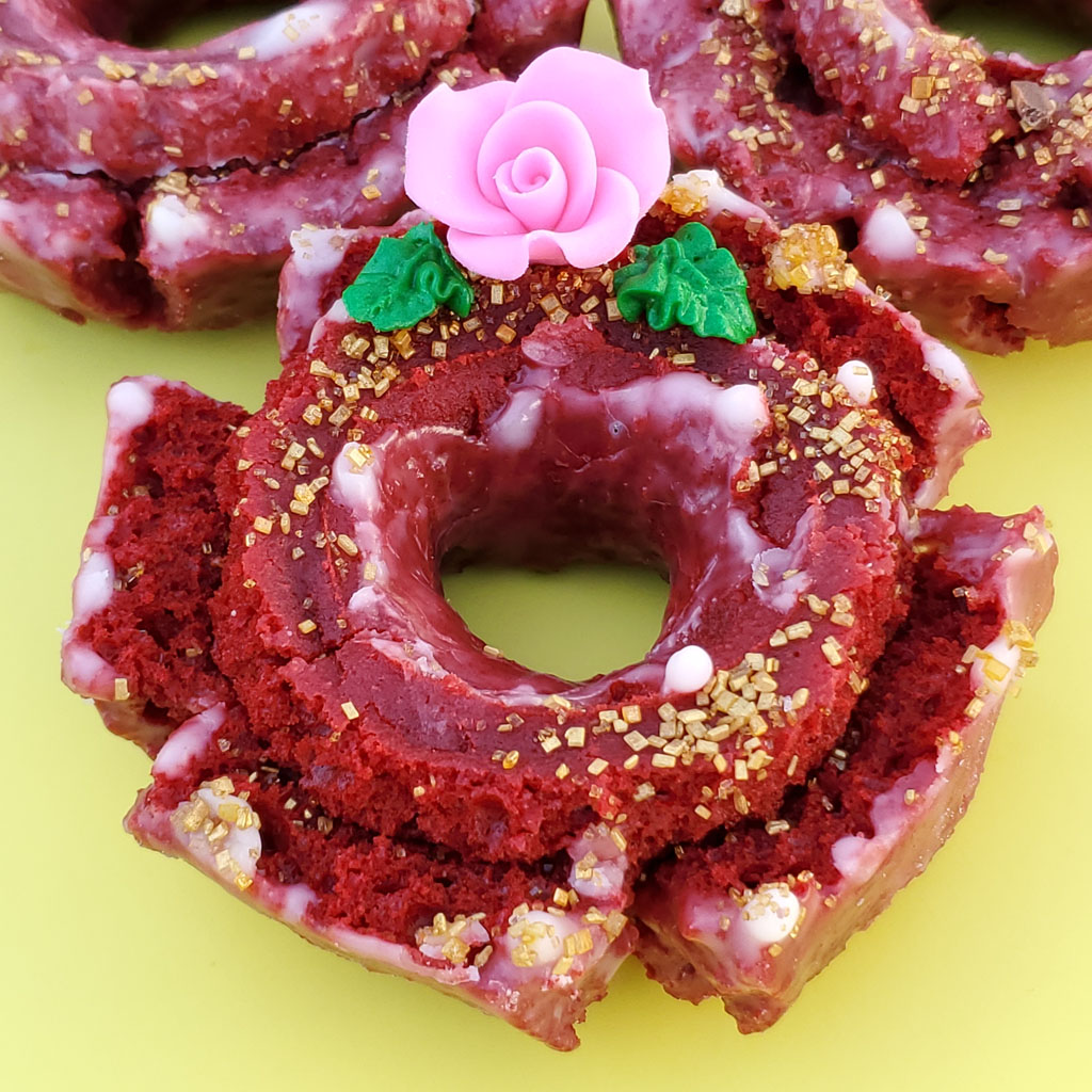 Cream cheese strawberry donuts, Cream cheese mix berry donuts, Valentine Red velvet Butter milk Donuts, Ferrero Rocher topping donuts, Glaze donuts, Chocolate donuts, Rose Champagne donuts.